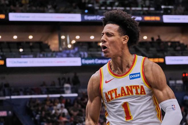 自特雷・杨再次受伤后,杰伦・约翰逊终于让全联盟看到了亚特兰大真正的领军人物是谁。这位24岁的锋线拿着5年1.5亿美元合同的第一年3000万美元,却交出了场均23.3分10篮板7.3助攻的全能数据。值得一提的是,本赛季场均至少22分、9个篮板、7次助攻的球员有三个,而杰伦约翰逊就是除了约基奇和申京外的第三人。更令人惊叹的是,他在得分、篮板、助攻和投篮命中率四项核心数据中均位列老鹰队内第一,彻底扛起了球队的攻防大旗。