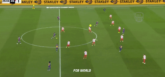 第26分钟,巴萨的进攻压上,佩德里在中圈送出直塞,拉菲尼亚压着马竞最后1名防守球员,在佩德里出脚瞬间高速奔袭,形成单刀机会。面对出击的门将奥布拉克,拉菲尼亚轻巧将其涮过,打空门得手!